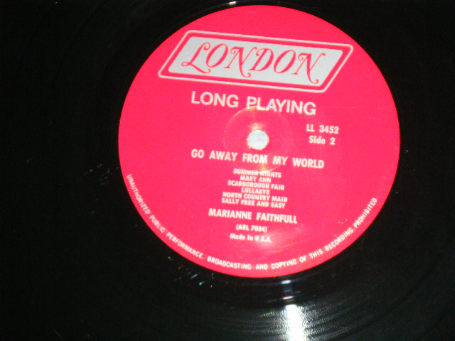 MARIANNE FAITHFULL - GO AWAY FROM MY WORLD ( Matrix # A)ARL 7033-1 N B)ARL 7034-1 N ) (Ex++,Ex/Ex+++ ) / 1965 US AMERICA ORIGINAL "RED Label with Boxed LONDON " MONO Used LP [LONDON LL-3452 MONO]