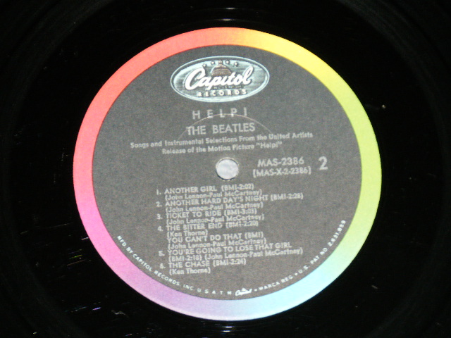 The BEATLES - HELP! ( Matrix # A) MAS-1-2386-F17 / B) MAS-2-2386-P4 #2 ) ( Ex/Ex++ Looks:Ex+ WOFC, EDSP ) / 1965 US AMERICA ORIGINAL "BLACK with COLOR BAND Label" MONO Used LP [CAPITOL MAS-2386 MONO]