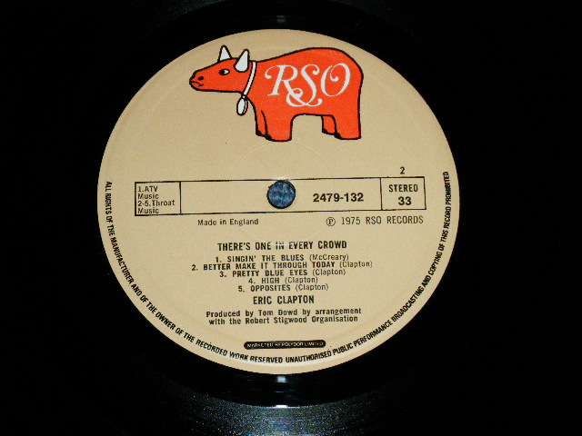 ARTIST :  ERIC CLAPTONTITLE :  THERE'S ONE IN EVERY CROWD  LABEL :   RSO   CONDITIONJACKETDISKEx+Ex  No. :   2479-132OTHERS :  1975 UK ENGLAND  ORIGINAL Used LP      MATRIX #   A) A1 B) B1