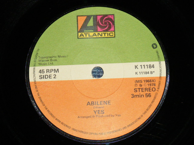 ※サイト内のすべての画像のコピー・無断転用を禁止しています。 個人・法人様のサイト(ブログ・HP・掲示板等)でのご紹介で使用されたい場合は前もってご連絡下さいARTIST : YESTITLE : A) DON'T KILL THE WHALE B) ABILENE LABEL : ATLANTIC CONDITIONJACKETDISKEx++Ex+++ No. : K-11184 OTHERS : RARE! 1978 UK ENGLAND ORIGINAL Used 7" Single with PICTURE SLEEVE ※サイト内のすべての画像のコピー・無断転用を禁止しています。 個人・法人様のサイト(ブログ・HP・掲示板等)でのご紹介で使用されたい場合は前もってご連絡下さい