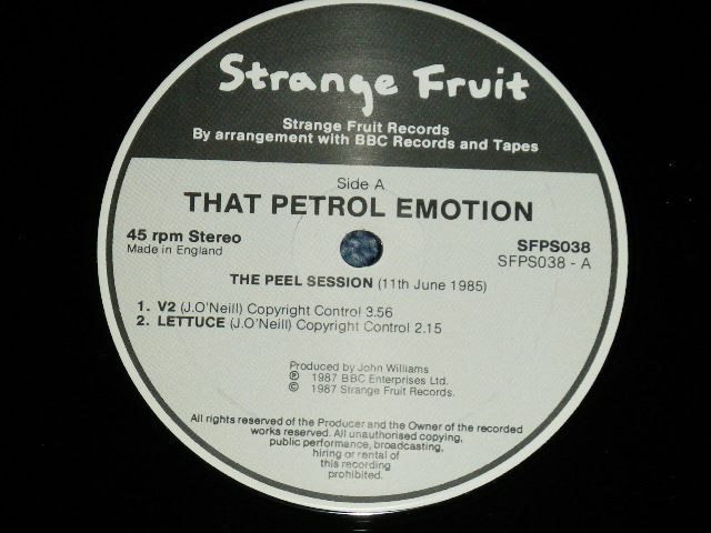 ARTIST : THE PETROL EMOTION TITLE : THE PEEL SESSIONSLABEL : STRANGE FRUIT CONDITIONJACKETDISKMINT- MINT- No. : SFPA 038OTHERS : 1987 UK ENGLAND ORIGINAL Used 4 Tracks 12"EP ※サイト内のすべての画像のコピー・無断転用を禁止しています。 個人・法人様のサイト(ブログ・HP・掲示板等)でのご紹介で使用されたい場合は前もってご連絡下さい