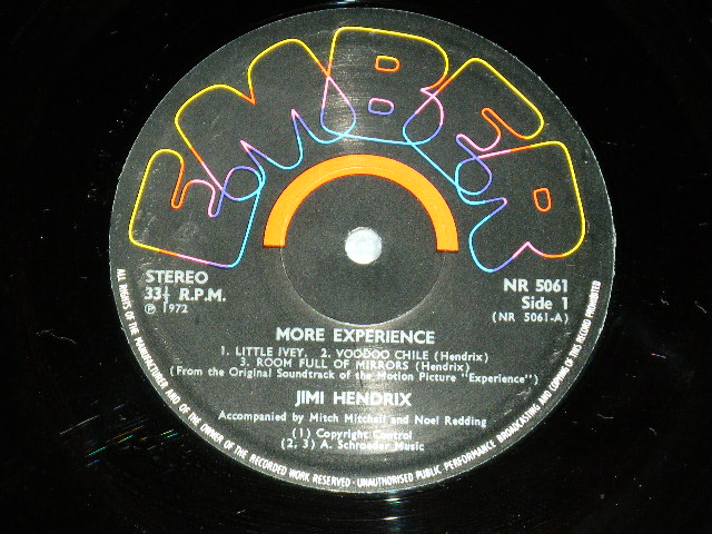 ARTIST : JIMI HENDRIX TITLE : MORE EXPERIENCE from Sound Tracks LABEL : EMBER CONDITIONJACKETDISKEx++MINT-Looks:Ex+++ No. : NR 5061 OTHERS 1972 UK ENGLAND ORIGINAL Used LP ※サイト内のすべての画像のコピー・無断転用を禁止しています。 個人・法人様のサイト(ブログ・HP・掲示板等)でのご紹介で使用されたい場合は前もってご連絡下さ