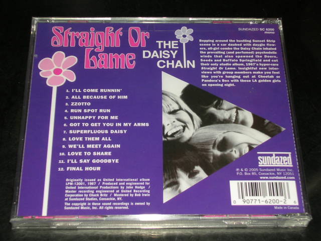 ARTIST : THE DAISY CHAIN TITLE : STRAIGHT OR LAME LABEL : SUNDAZED CONDITION JACKET DISK SEALED SEALED No. : SC-6200 OTHERS : 1967 ORIGINAL RELEASE SOFT PSYCHE