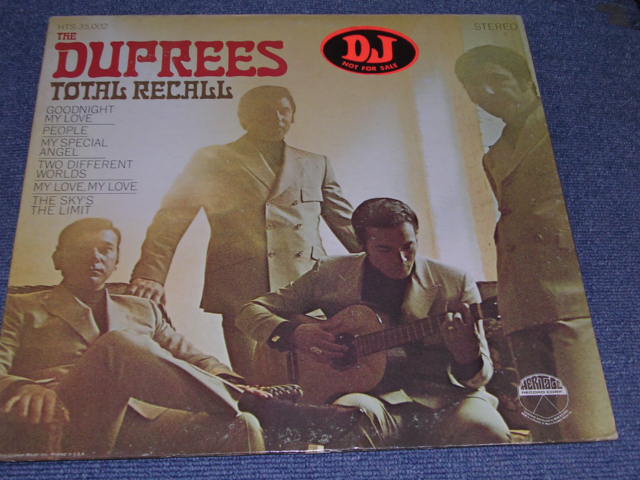 ARTIST :  DUPREES  TITLE :  TOTAL RECALL   LABEL :   HERITAGE   CONDITION JACKET DISK Ex+++  MINT-     EDGE SPLIT AT BOTTOM    No. :    HTS-35002 OTHERS :            SOFT ROCK     MOSTLY FAMOUS GROUP