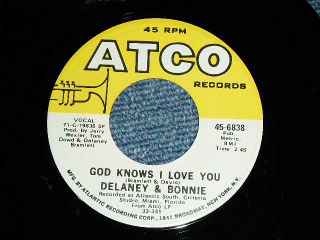 DELANEY & BONNIE - ONLY YOU KNOW AND I KNOW ( FAT LOGO for 1st Press ) / 1971 US ORIGINAL Used 7"SINGLE With COMPANY SLEEVE [ATCO 45-6838]