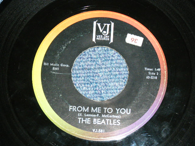 ARTIST : THE BEATLES TITLE : A) PLEASE PLEASE ME B) FROM ME TO YOU LABEL : VEE JAY CONDITION JACKET DISK non Ex+ SEAL ON LABEL No. : VJ 581 OTHERS : 1964 US Black With RAINBOW Label, With "BARCKETS" Logo on Top Used 7" inch SINGLE E