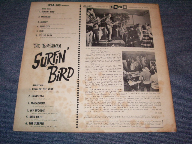 ARTIST : THE TRASHMEN TITLE : SURFIN' BIRD LABEL : SOMA CONDITION JACKET DISK VG++ Ex+ A-1 : SCRATCHE PLAYS THROUGH , HAVE A HEAVY POP NOISE No. : GAS-200 OTHERS : RELEASE YEAR : 1964 COUNTRY : AMERICA MONO MOST FAMOUS 60s SURFA GARAGE!! 御願い 裏ジャケの写真ですが左下が青くなってますが現品にはありません。 ご安心ください。