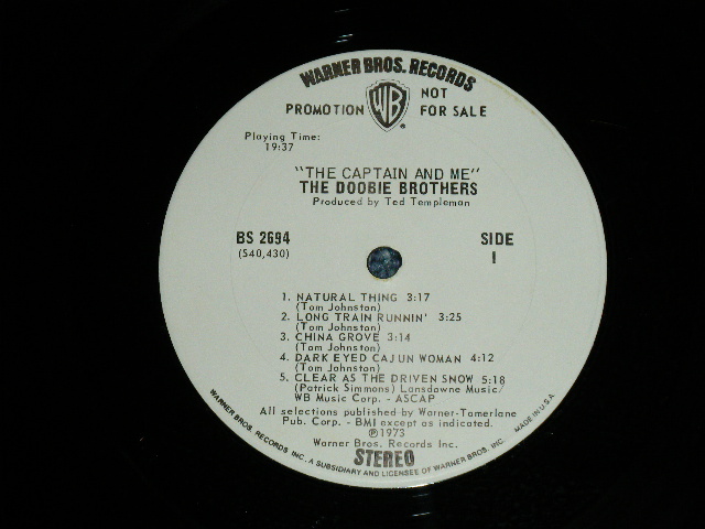 ARTIST : DOOBIE BROTHERS  TITLE : THE CAPTAIN AND MELABEL : WARNER BROTHERS  CONDITIONJACKETDISKEx+Ex++   LIGHT SURFACE SCRATCHES PLAYS FE FEEL THE NOISE  No. :      BS-2694OTHERS : VERY RARE !         1973 US AMERICA ORIGINAL "WHITE LABEL PROMO" Used LP