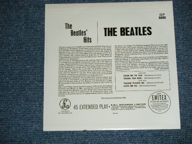 THE BEATLES - THE BEATLES' HITS ( EMI RECORDS LTD. Credt on Label Ring) ( Matrix # 2N/2 ) ( MINT-/MINT ) / 19?? UK MONO Used 7"EP With PICTUER SLEEV[PARLOPHONE GEP-8880]