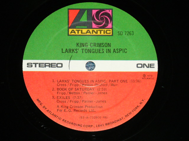 KING CRIMSON - LARK's TONGUES IN ASPIC (:Matrix # A) ST-A-732809-B / B) ST-A-732810-B )(VG+++/Ex++ Looks:Ex+++ : EDSP ) / 1973 US ORIGINAL 1st Press "1841 BROADWAY Credit Label" LABEL LP [ATLANTIC SD-7263]