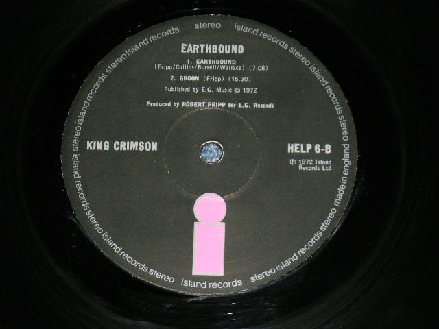 KING CRIMSON - EARTH BOUND ( Matrix No.A) A-2U/ B) B-1U ) ( Ex++/MINT- ) / 1972 UK ENGLAND ORIGINAL "PINK 'i' Label" Used LP [ISLAND HELP-6]