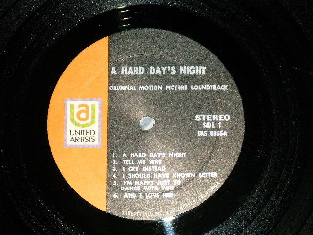 THE BEATLES - A HARD DAYS NIGHT ( Sound Track ) ( Matrix # A) UAS 6366-A Re-2 B) UAS 6366-B Re-2 ) ( MINT-/Ex+++ ) / 1970-71 Version US AMERICA "BLACK with ORANGE Label" STEREO Used LP[UNITED ARTISTS UAS-6366 STEREO]