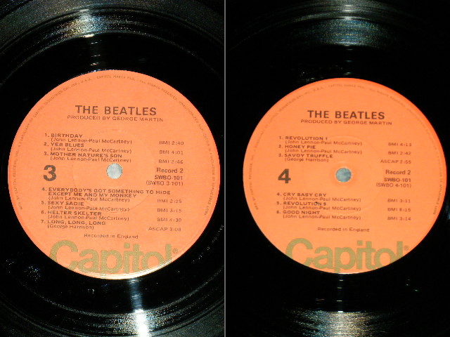 BEATLES - THE BEATLES ( WHITE ALBUM ) ( Matrix # A) SWBO-1- 101-F85 B) SWBO-2- 101-G-82 A-60830 C) SWBO-3- 101-J-85 D) SWBO-2- 101-G-82 MASTERED BY CAPITOL ) (NO Insetrs ) ) ( Ex+/Ex+++ ) / 1976 Version US AMERICA "ORANGE Label" Used 2-LP [CAPITOL SWBO-101]