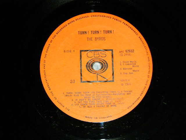 BYRDS, THE - TURN! TURN! TURN!(Matrix # A) A2 / B) B1 ) (Ex+,VG++++/Ex+++,Looks:Ex+ , Ex+++ ) / 1965 UK ENGLAND ORIGINAL MONO Used LP [CBS BPG 62652 MONO]