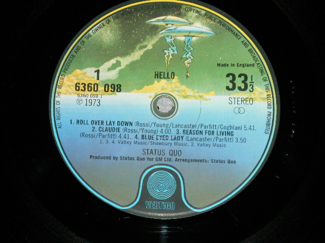 STATUS QUO - HELLO! ; With POSTER ( Matrix # A) 1//1 / B) 2//1) ( Ex++/MINT- Small EDSP) / 1973 UK ENGLAND ORIGINAL Used LP