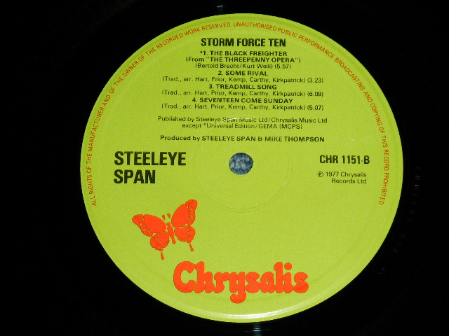 STEELEYE SPAN - STORM FORCE TEN : With Original Inner Sleeve & Inserts ( Matrix # A 1/ B 1 ) ( Ex+++/MINT- ) / 1977 UK ENGLAND ORIGINAL "GREEN Labell" Used LP 7[CHRYSALIS CHR-1151]
