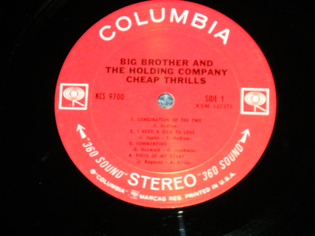 BIG BROTHER & THE HOLDING COMPANY ( With JANIS JOPLIN ) - CHEAP THRILLS ( Matrix # A) XSM-137375-1B / B) XSM-137376-1B ) ( Ex+/Ex++, Ex+ Looks:Ex- ) / 1967 US AMERICA ORIGINAL "360 Sound Label" Used LP