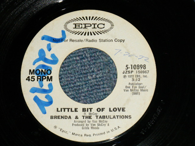 BRENDA & The TABULATIONS - LITTLE BIT OF LOVE ( Ex/Ex : WOL) / 1972 US AMERICA ORIGINAL "PROMO Only Same Flip Mono & Stereo" Used 7"45 [EPIC 5-10898]