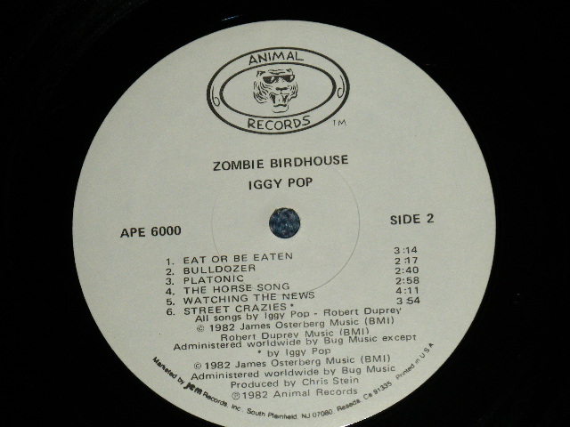 IGGY POP - ZOMBIE BIRDHOUSE (Matrix # A) APE 6000 A HYB STERLING B) APE 6000 B HYB STERLING ) ( Ex+++/MINT) / 1982 US AMERICA ORIGINAL Wax + CANADA Jacket "NO BARCOARD on BACK COVER" Used LP[ANIMAL APE-6000]