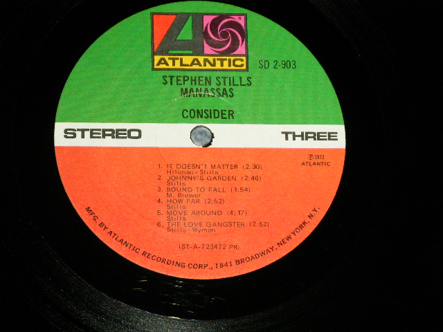 STEPHEN STILLS MANASSAS - MANASSAS :With POSTER $ Custom Inner (Matrix # A)ST-A-722471-E AT PR B)ST-A-722473-D AT / GP PR C)ST-A-722472-E AT PR D)ST-A-722474 D PR) ("PR" at Bottom) (Ex++/MINT- EDSP) /1972 US AMERICA ORIGINAL "PROMO" 1st Press "1841 BROADWAY Label" Used 2-LP [TLANTIC SD 2-903]