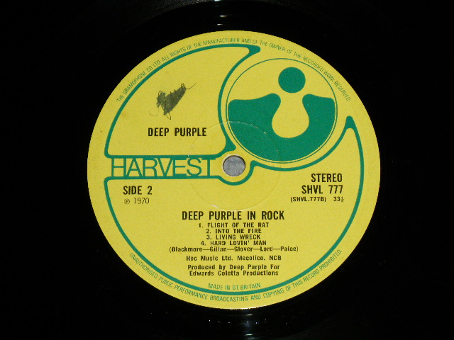 DEEP PURPLE - IN ROCK (Matrix #A)A-2 B)B-1)(Ex/Ex+++ A-1:Ex TAPE, WOL) / 1970 UK ENGLAND ORIGINAL 1st Press " No Credit EMI on Label" Used LP [HARVEST SHVL-777]