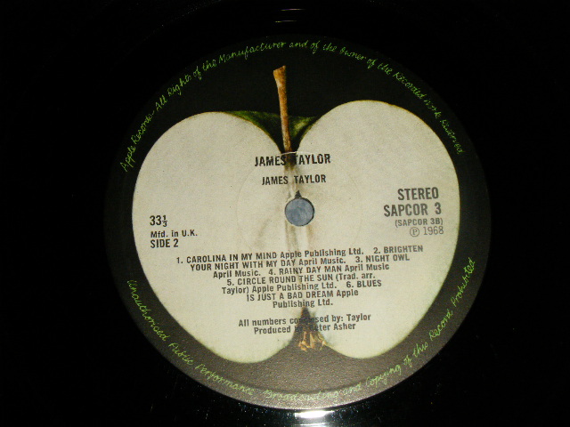 JAMES TAYLOR - JAMES TAYLOR 2nd Press "BLACK TITLE / NAME Credit" on Front Cover ) (Matrix # A-1/B-1) (Ex/Ex++ Looks:Ex+++ EDSP) / 1968 UK ENGLAND Later Press "BLACK Logo on Front Cover" Used LP[APPLE SAPCOR-3]