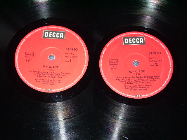 ※サイト内のすべての画像のコピー・無断転用を禁止しています。 個人・法人様のサイト(ブログ・HP・掲示板等)でのご紹介で使用されたい場合は前もってご連絡下さい。 | ARTIST : | UFO | | TITLE : | LIVE ( IN JAPAN ) | | LABEL : | DECCA | | CONDITION | | JACKET | DISK | | Ex+ | MINT- | | | No. : | SLK-16769-P | | OTHERS : | COARTING JACKET " MADE IN WEST GERMANY PRINTED ON RECORD. |  ※サイト内のすべての画像のコピー・無断転用を禁止しています。 個人・法人様のサイト(ブログ・HP・掲示板等)でのご紹介で使用されたい場合は前もってご連絡下さい