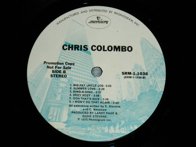 CHRIS COLOMBO - CHRIS COLOMBO (Ex+/Ex Looks:Ex++ TOFC) / 1975 US AMERICA ORIGINAL "WHITE LABEL PROMO" "With PROMO KIT & PHOTOs" Used LP [MERCURY SRM-1-1036]