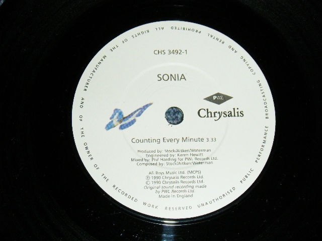 SONIA - A)COUNTING B)EVERY MINUTE (Ex+/MINT- PINHOLE) / 1990 UK ENGLAND ORIGINAL Used 7" 45rpm Single With PICTURE SLEEVE[PWY / CHRYSALIS CHS-3492]