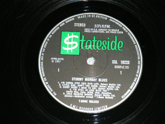 T-BONE WALKER - STORMY MONDAY BLUES (Ex++/Ex++ A-5:VG+++) / 1968 UK ENGLAND ORIGINAL STEREO Used LP [BLUESWAY / STATESIDE SSL-10223]
