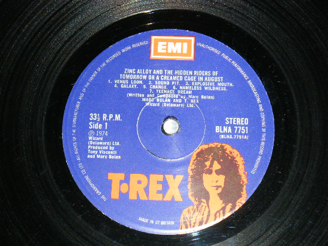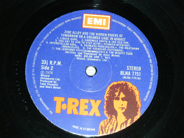 MARC BOLAN & T-REX - Zinc Alloy And The Hidden Riders Of Tomorrow Or A Creamed Cage In August (With CUSTOM INNER) (VG+/Ex++ PAINT) / 1974 UK ENGLAND ORIGINAL Used LP[EMI BLNA-7751]