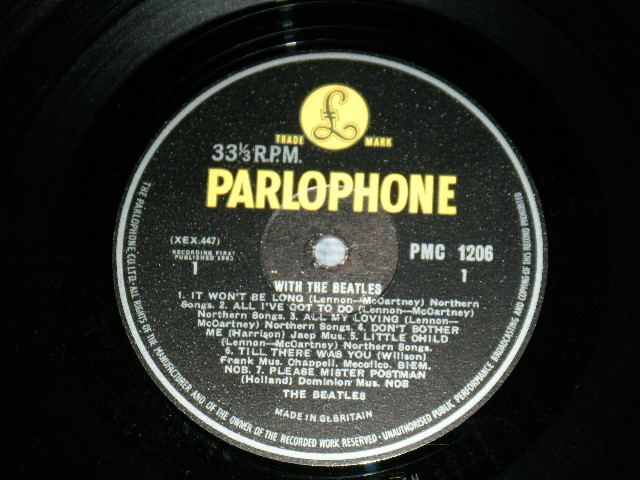 THE BEATLES - WITH THE BEATLES (Matrix #A)YEX 447-6N 3 GDR B)YEX 448-5N 3 HL) "Jacket:GOT A HOLD" Label: GOT A HOLD"/"Dominion") (Ex++/Ex++ A-1:VG+++) / 1967 Version? UK ENGLAND ORIGINAL "YELLOW PARLOPHONE" MONO Used LP[PARLOPHONE PMC-1206 / PMC 1206 MONO]