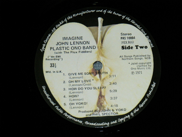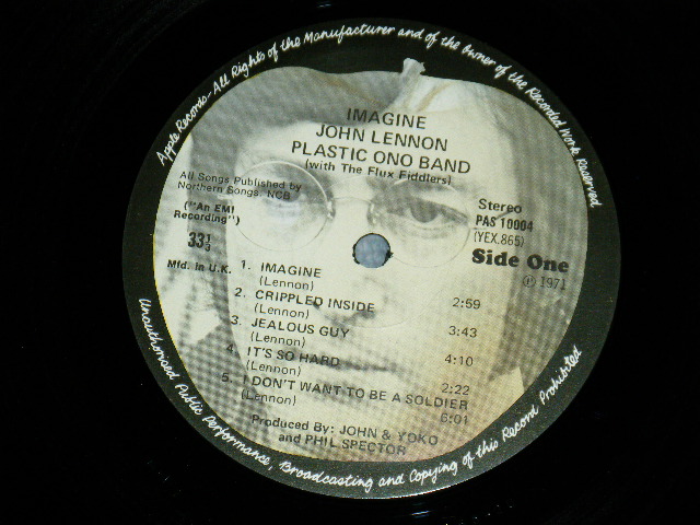 JOHN LENNON of THE BEATLES - IMAGINE (Matrix #A)YEX-865-2U 4 71 B)YEX-866-1U 11 PECCO 431) (Ex++/Ex++N Looks:MINT-) / 1977 Version? UK ENGLAND RE-PRESS Used LP [APPLE PAS-10004]