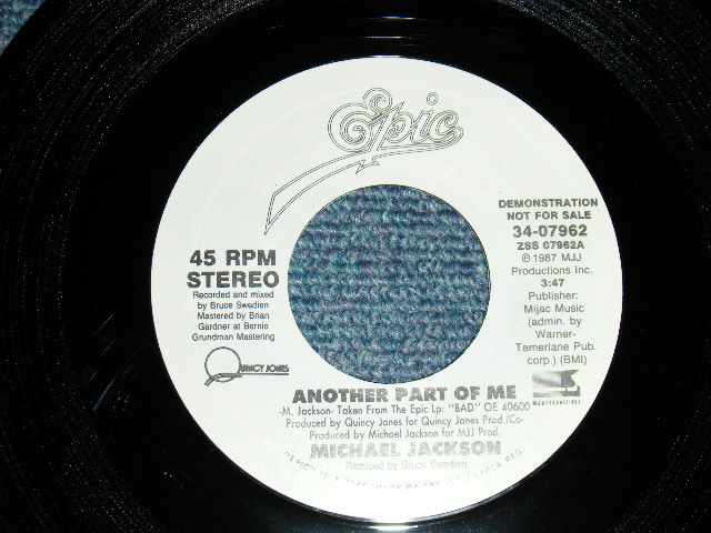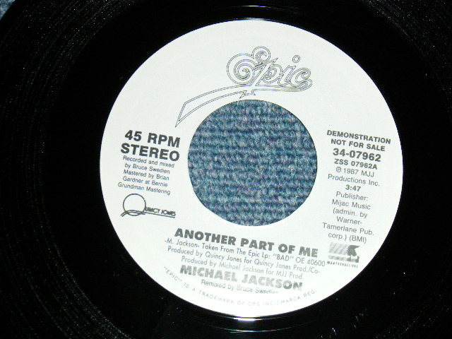 ARTIST : | #MICHAEL JACKSON | TITLE : | #ANOTHER PART OF ME A)STEREO B)STEREO |