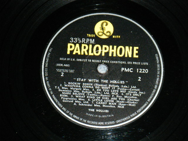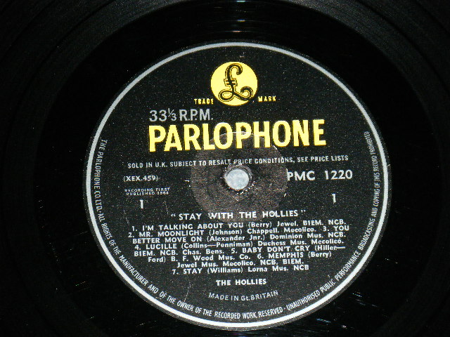 THE HOLLIES - STAY WITH THE HOLLIES (Matrix #A) XEX-459-1N 1 L B) XEX-460-1N A)(VG+++/Ex+++ EDSP) / 1964 UK ENGLAND ORIGINAL "YELLOW PARLOPHONE" &" SOLD IN UK..." credit Label MONO Used LP [PARLOPHONE PMC-1220 MONO]