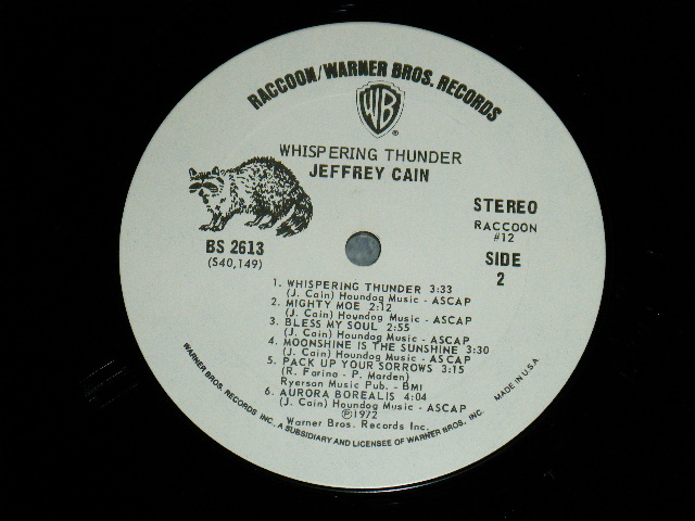 JEFFREY CAIN (Produced by JESSE COLIN YOUNG of The YOUNGBLOODS) - WHISPERING THUNDER (Ex++/MINT- CUT OUT for PROMO) / 1972 US AMERICA ORIGINAL "WHITE LABEL PROMO" Used LP [WARNER BROS. BS-2613]