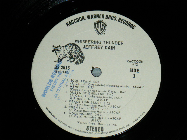 JEFFREY CAIN (Produced by JESSE COLIN YOUNG of The YOUNGBLOODS) - WHISPERING THUNDER (VG+++/Ex+++ CUT OUT for PROMO) / 1972 US AMERICA ORIGINAL "WHITE LABEL PROMO" Used LP [WARNER BROS. BS-2613]