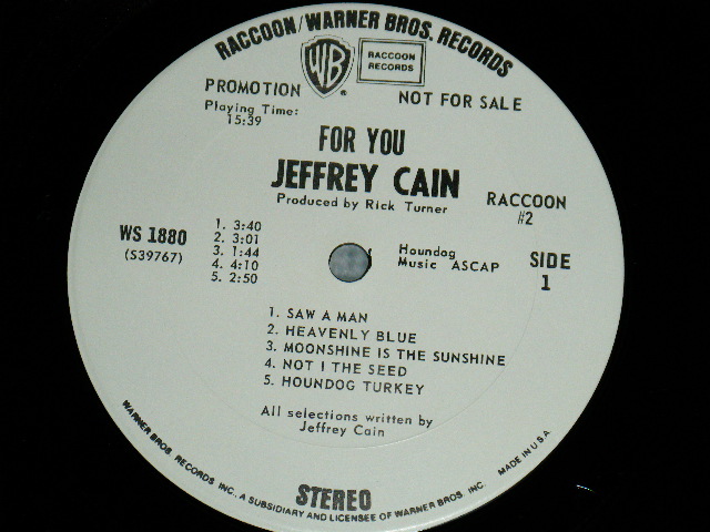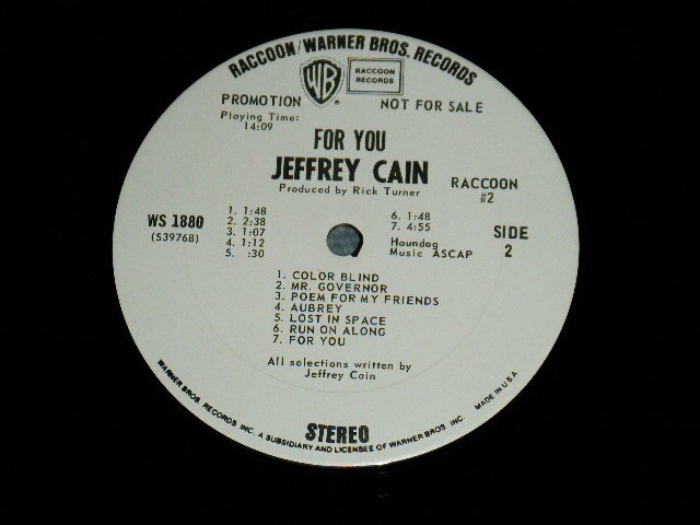 JEFFREY CAIN (Back Up Support by The YOUNGBLOODS) - FOR YOU (Ex++/MINT-) / 1970 US AMERICA ORIGINAL "WHITE LABEL PROMO" Used LP [WARNER BROS. WS-1880]
