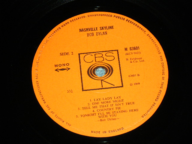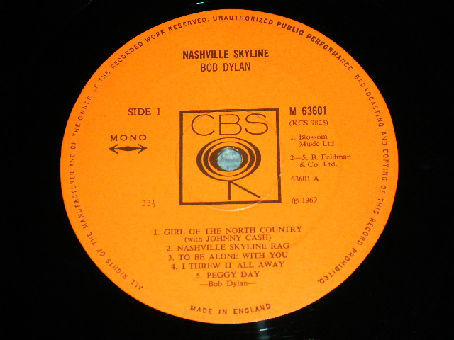 BOB DYLAN - NASHVILLE SKYLINE (Matrix # A)63601 A1 B)63601 B1) (Ex+++/Ex+++)/ 1969 UK ENGLAND ORIGINAL MONO Used LP [CBS M-63601 MONO]