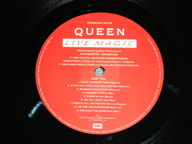 QUEEN - LIVE MAGIC (With CUSTOM INNER) (Matrix #A)A) A-3U-1-1- B)B-3U-1-1-) (A-6:MISS PRINT) (E++/Ex++++) / 1986 UK ENGLAND ORIGINAL Used LP [EMI EMC-3519]