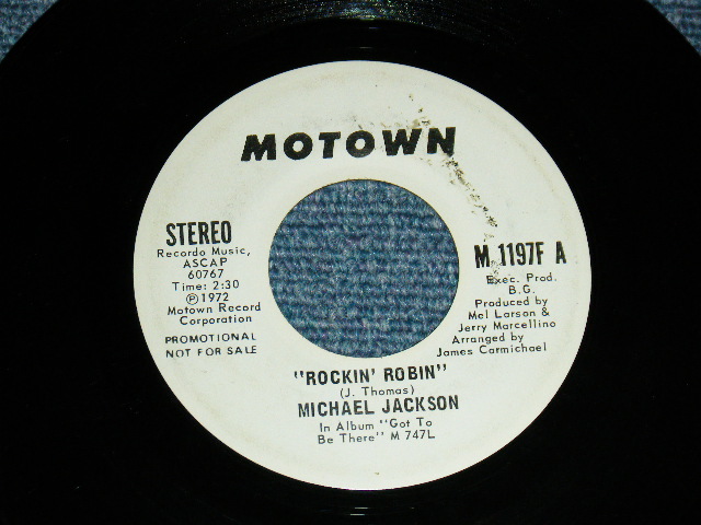 MICHAEL JACKSON - Rockin' Robin A) MONO B) STEREO (- / Ex+, Ex+) / 1972 US AMERICA ORIGINAL "PROMO ONLY SAME FLIP M/ST" Used 7" Single [MOTOWN M1197F]
