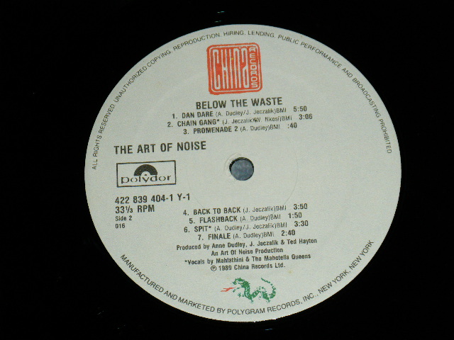 THE ART OF NOISE - BELOW THE WASTE (MINT/MINT-) / 1989 US AMERICA ORIGINAL Used LP[CHINA RECORDS 422 839 404-1]