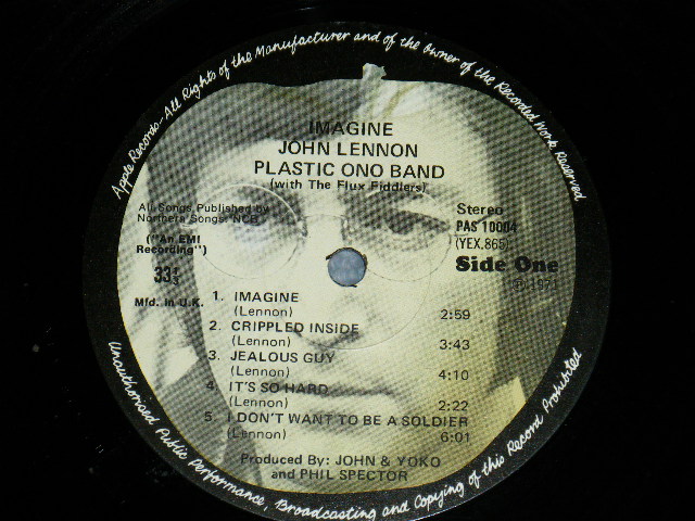 JOHN LENNON of THE BEATLES - IMAGINE (Matrix #A)YEX-865-2U 3 47 B)YEX-866-1U PECCO C 369) (Ex+++/Ex+++) / 1977 Version? UK ENGLAND RE-PRESS Used LP [APPLE PAS-10004]