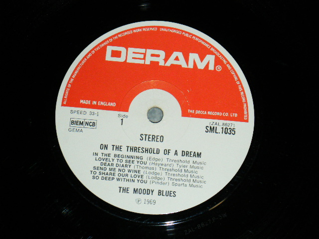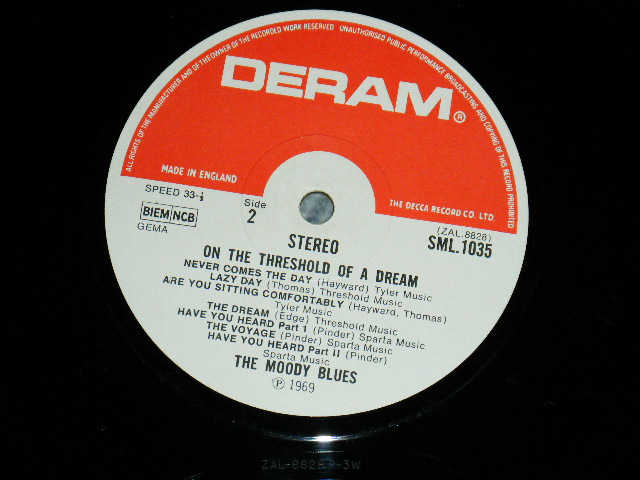 The MOODY BLUES - ON THE THRESHOLD OF A DREAM : With BOOKLET (MATRIX # A)ZAL-8827-3W B)ZAL-8828-3W) (Ex+++/Ex+++) / 1971 Version UK ENGLAND RE-PRESS REISSUE" STEREO" Used LP [DERAM SML-1035 STEREO]