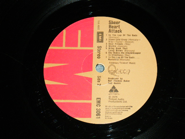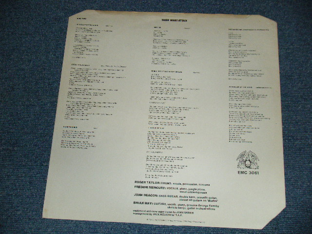 QUEEN - SHEER HEART ATTACK (With CUSTOM INNER)(Matrix #A) 3U B) 3U ) (Ex+/Ex+ A-1,B-1:POOR CRACK) / 1974 UK ENGLAND ORIGINAL Used LP[EMI EMC-3061]