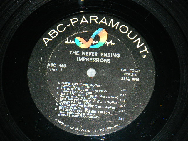 The IMPRESSIONS - THE NEVER ENDING (Ex+/Ex+ Looks:VG+++ EDSP) / 1964 US AMERICA ORIGINAL "MONO" Used LP [ABC-PARAMOUNT ABC-468 MONO]