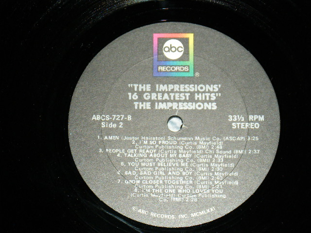 The IMPRESSIONS - 16 GREATEST HITS (Ex+/Ex++ Looks:Ex+EDSP) / 1971 US AMERICA ORIGINAL Used LP [ABC-PARAMOUNT ABCS-727]