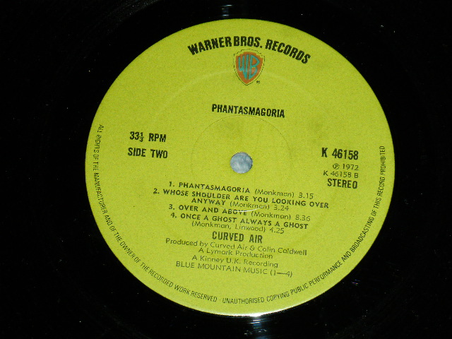 CURVED AIR - PHANTASMAGORIA (With INSERTS) (Matrix #A) A2 B) B2)(Ex++/MINT-) / 1972 UK ENGLAND ORIGINAL 1st Press "GREEN with WB Label" Used LP