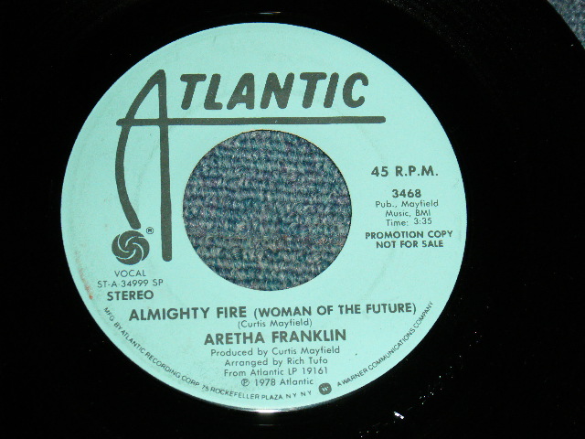 ARETHA FRANKLIN - ALMIGHTY FIRE(Woman Of The Future) A)MONO B)STEREO (MINT-/MINT-) /1978 US AMERICA ORIGINAL "PROMO ONLY SAME FLIP MONO-STEREO" Used 7"45