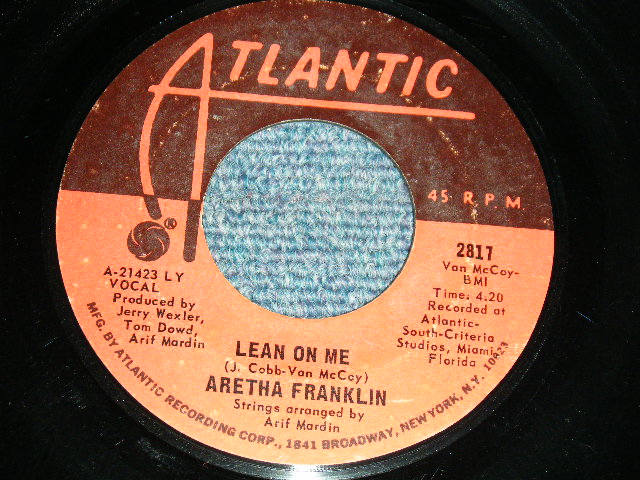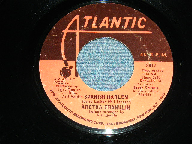 ARETHA FRANKLIN - A)Spanish Harlem B)Lean On Me (MINT-/MINT-) /1971 US AMERICA ORIGINAL "LATER PRESS Label" Used 7"45 [ATLANTIC 2817]